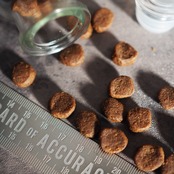 放し飼いの鶏・七面鳥、天然魚、平飼い卵など、高品質な動物性原材料を85%使用。