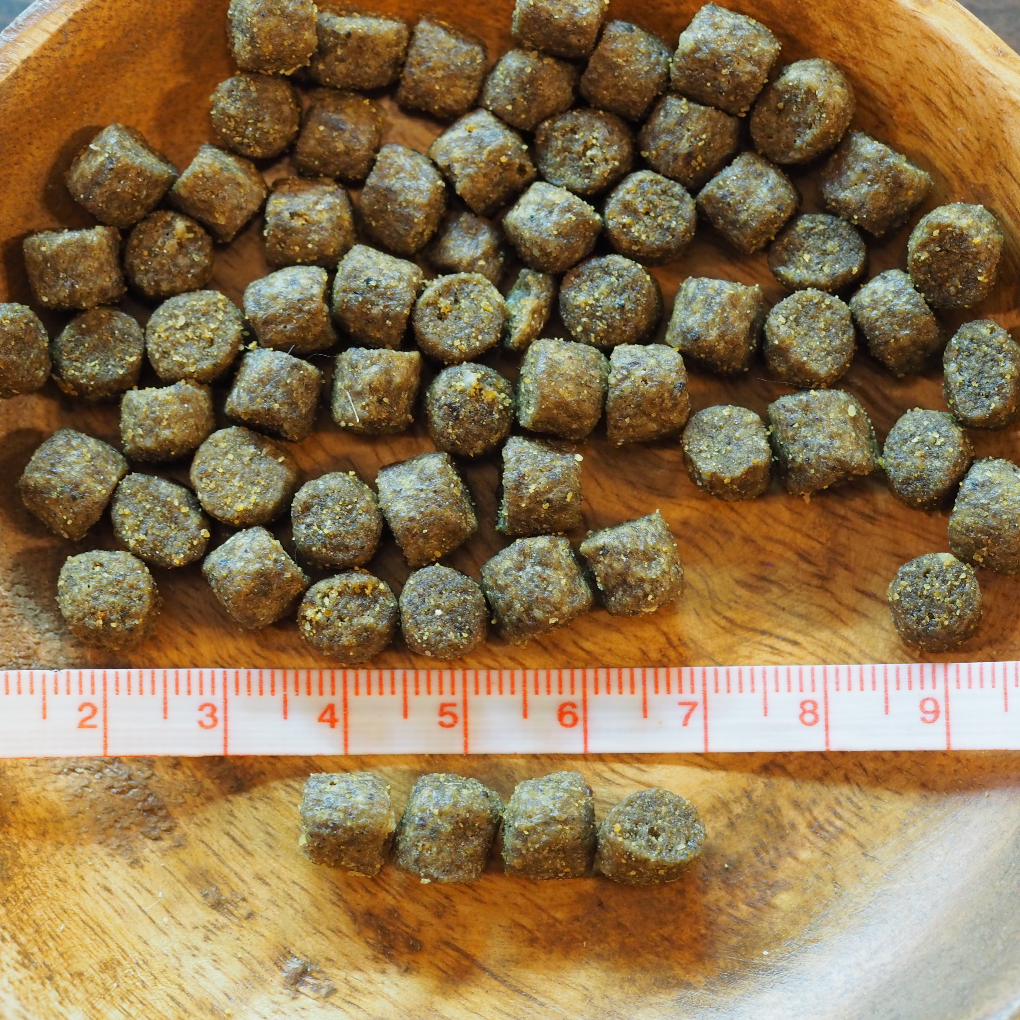 粗タンパク質 30.0%以上 粗脂肪 14.0%以上 粗繊維 4.5%以下 水分 10.0%以下 DHA 0.11%以上