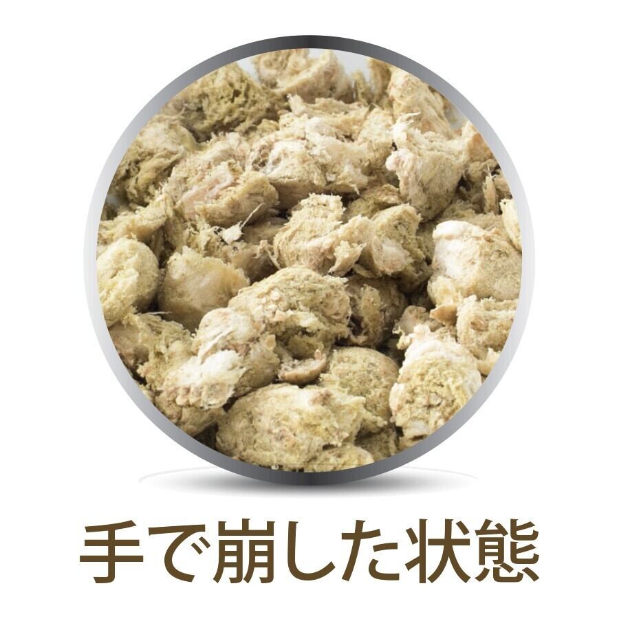 フードにトッピングして、3倍量の水(37℃以下)を加えて与えてください。 そのまま、おやつとして、また、崩してふりかけとして、与えることもできます。